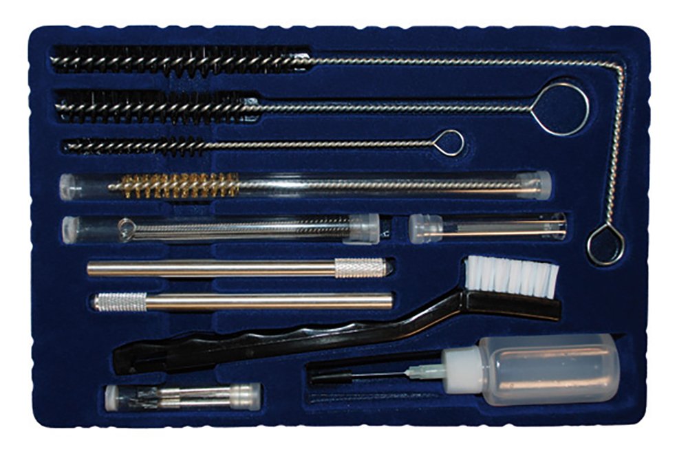 Täydellinen setti työkaluja ruiskun puhdistukseen ja huoltoon.